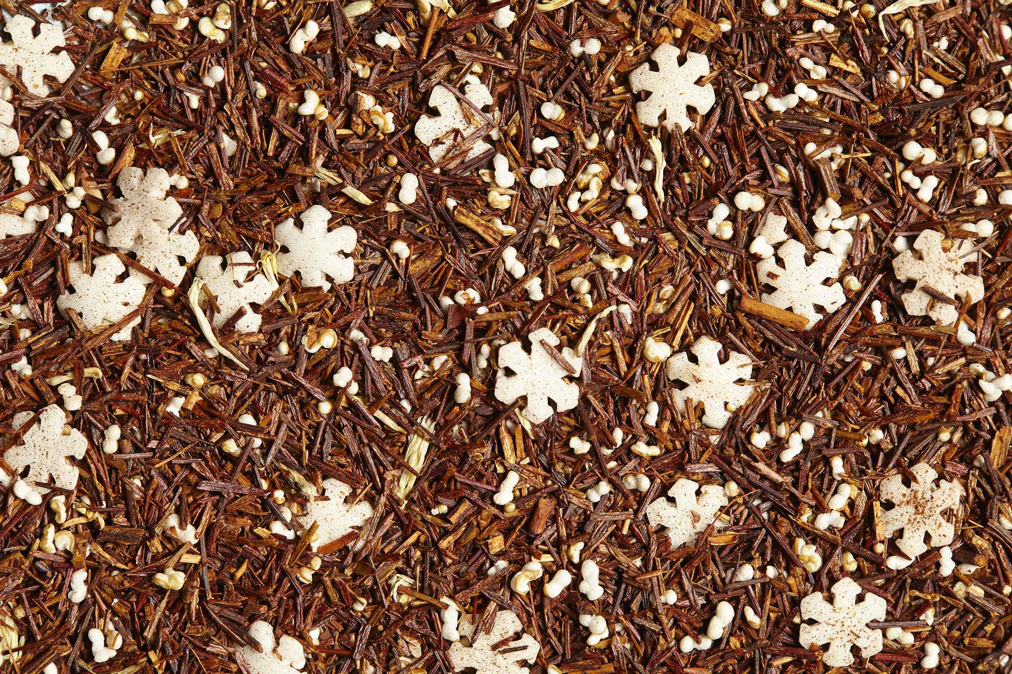 Sur une base de rooibos, donc sans théine, avec des morceaux de sucre en forme de flocons, vous pouvez déguster plusieurs tasses de cette infusion gourmande.