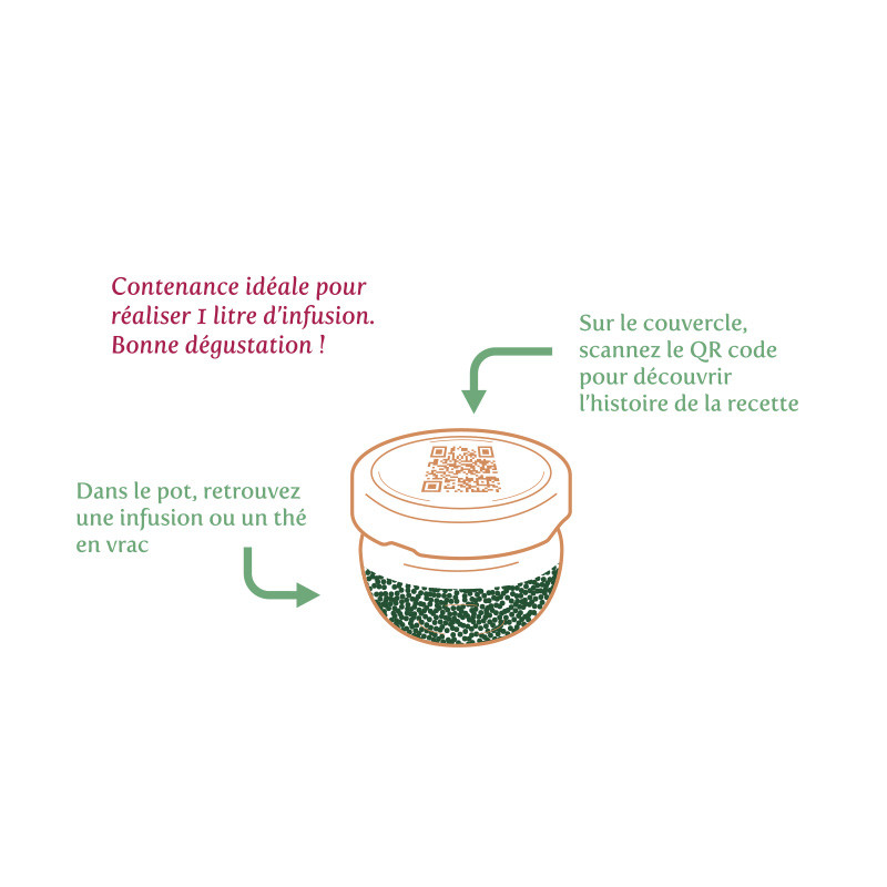 Les recettes sont conditionnées dans des pots recyclables de 4 à 10 g pour environ 1L de boisson.