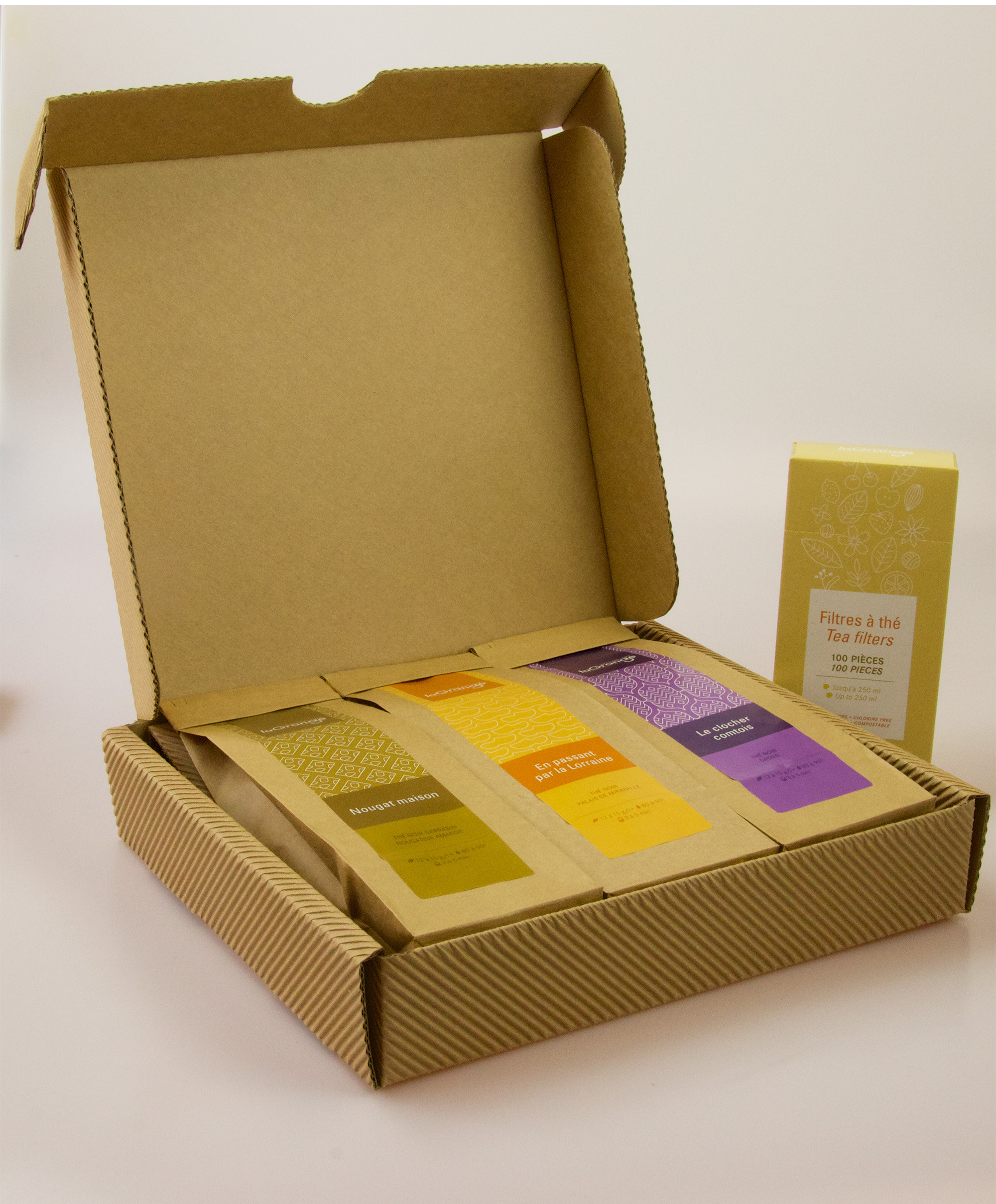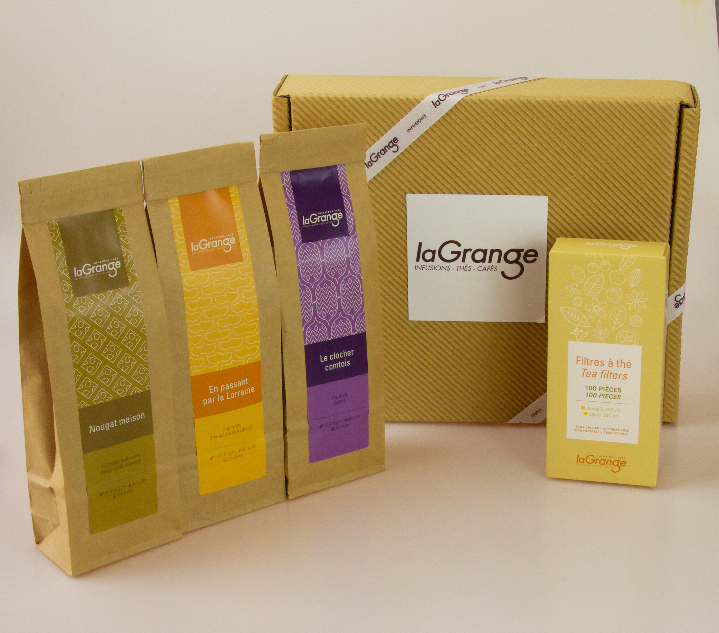 laGrange vous propose un coffret de 3 thés noirs accompagnés d'une boîte de 100 filtres biodégradables, le tout livré prêt à offrir dans son joli écrin cadeau.