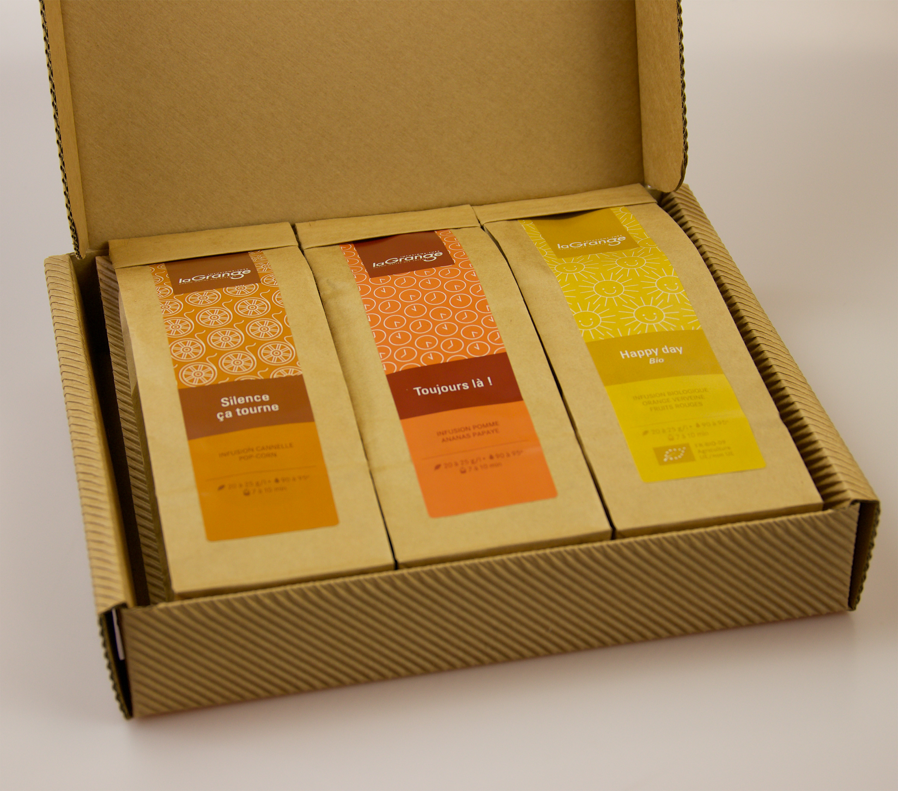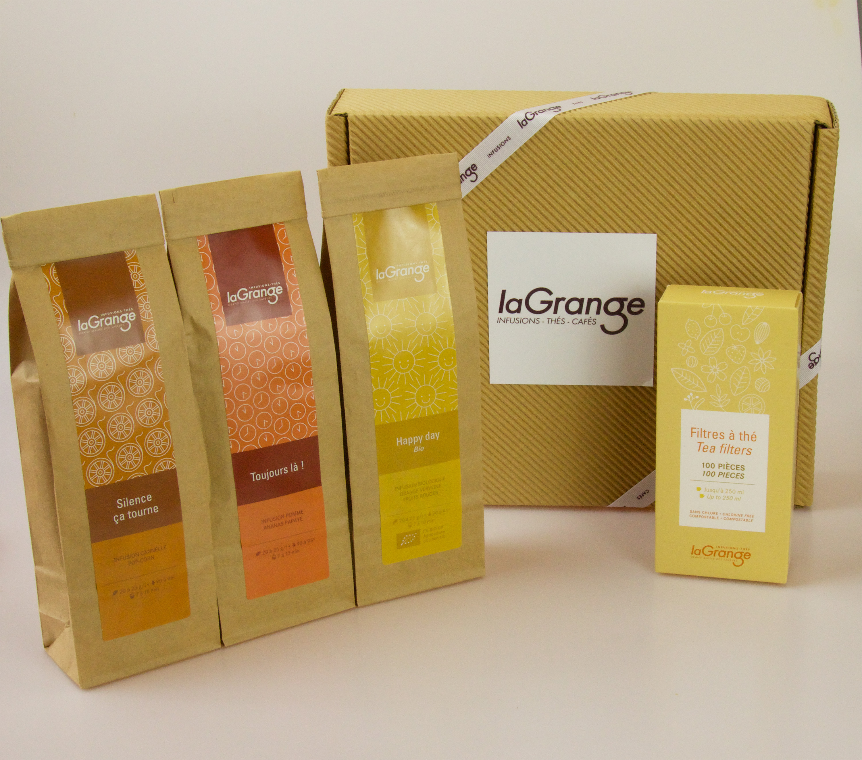 laGrange vous propose un coffret de 3 infusions accompagnées d'une boîte de 100 filtres biodégradables, le tout livré prêt à offrir dans son joli écrin cadeau.