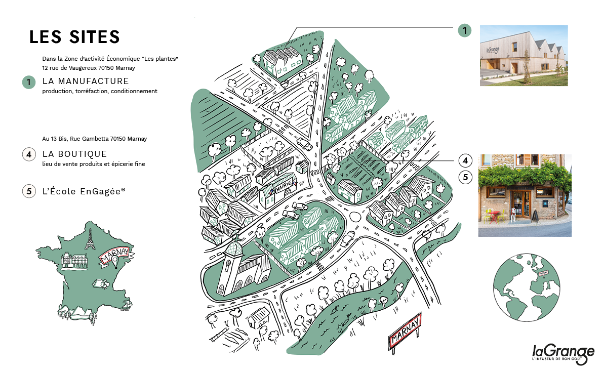 Le berceau de la marque prend racine à Marnay, où une grange réhabilitée devient bien plus qu’une boutique : un point de rencontre et d’apprentissage, un lieu incontournable où se cultive un art de vivre décomplexé, chers aux fondateurs, commerçants dans l’âme. Fort de son succès, un nouveau chapitre s’ouvre en 2022 avec l’inauguration d’une manufacture dans ce même village, réunissant production, R&D et torréfaction, dans le respect des valeurs d’authenticité et de qualité.